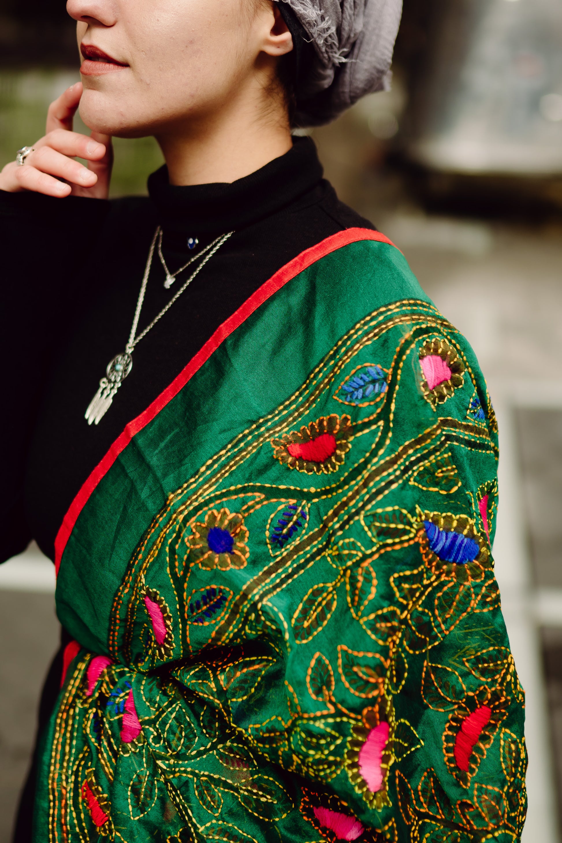 Hand embroidered cotton dupatta