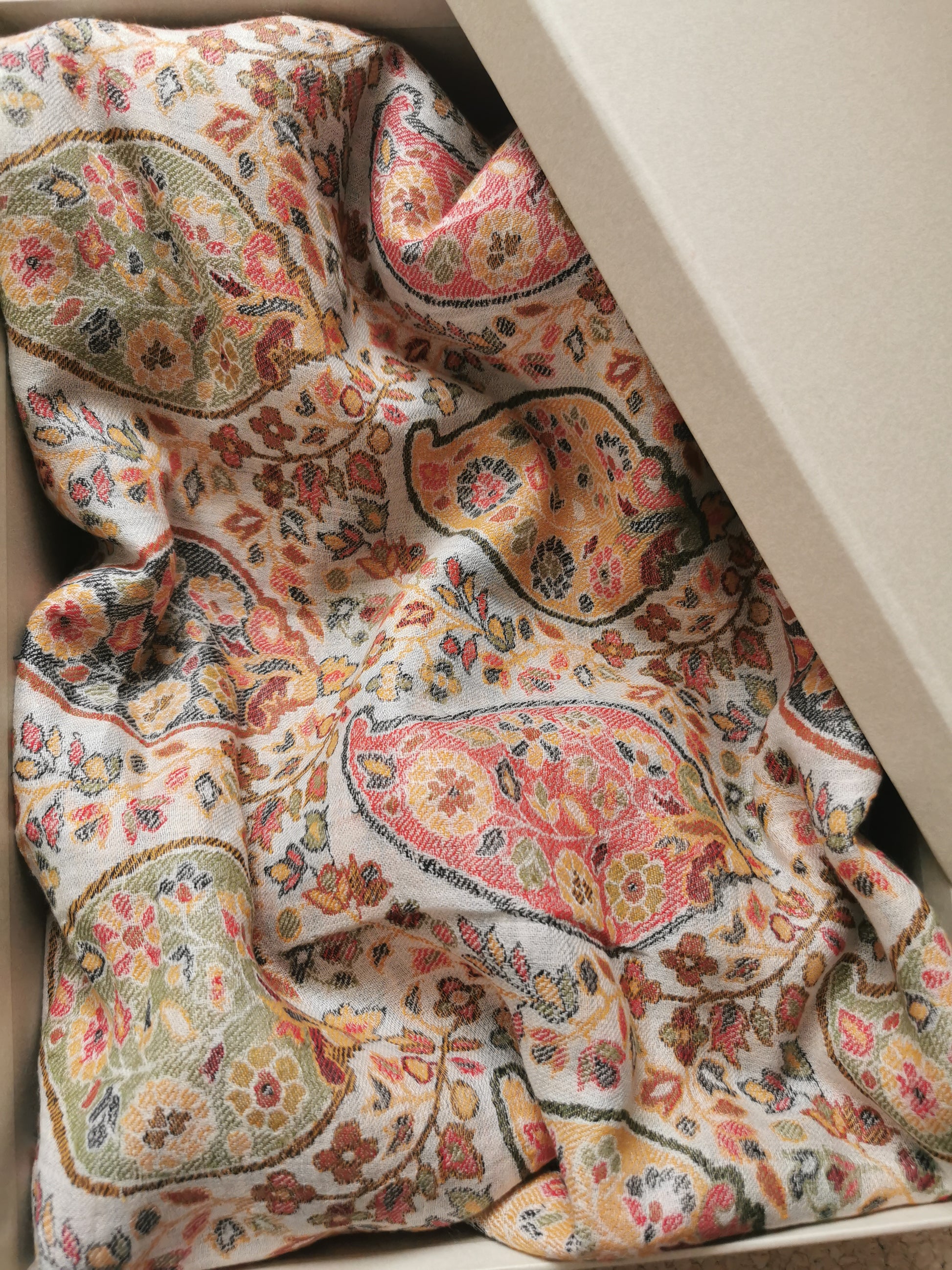 A Kani shawl is a type of Kashmir shawl originating from the Kanihama area of Kashmir. The shawls are woven from pashmina yarn. Kani shawls use needles made from cane or wood. The distinguishable, Mughal patterns, usually of flowers and leaves, are woven into the fabric like a carpet, thread by thread, based on the coded pattern called 'Talim'.
